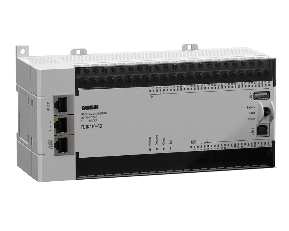 ОВЕН ПЛК110[М02] – линейка программируемых моноблочных контроллеров с дискретными входами/выходами на борту для автоматизации средних систем.